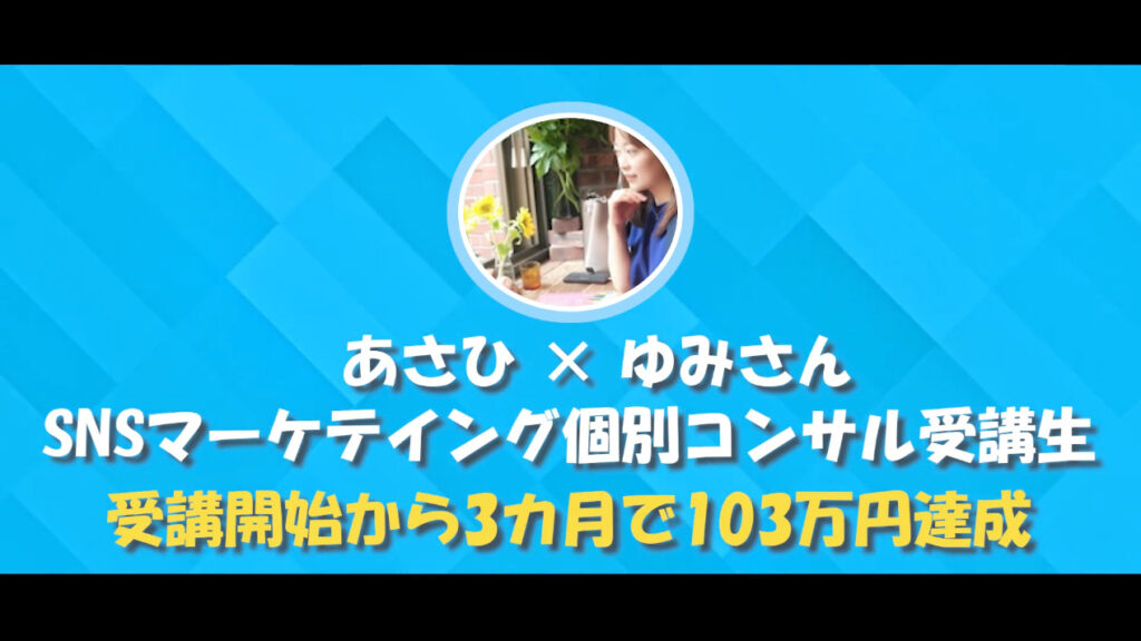 ゆみ:はい。もともとはゼロだった収益が、コンサル開始から3か月で103万円に達しました。特に効果的だったのがInstagramライブです。