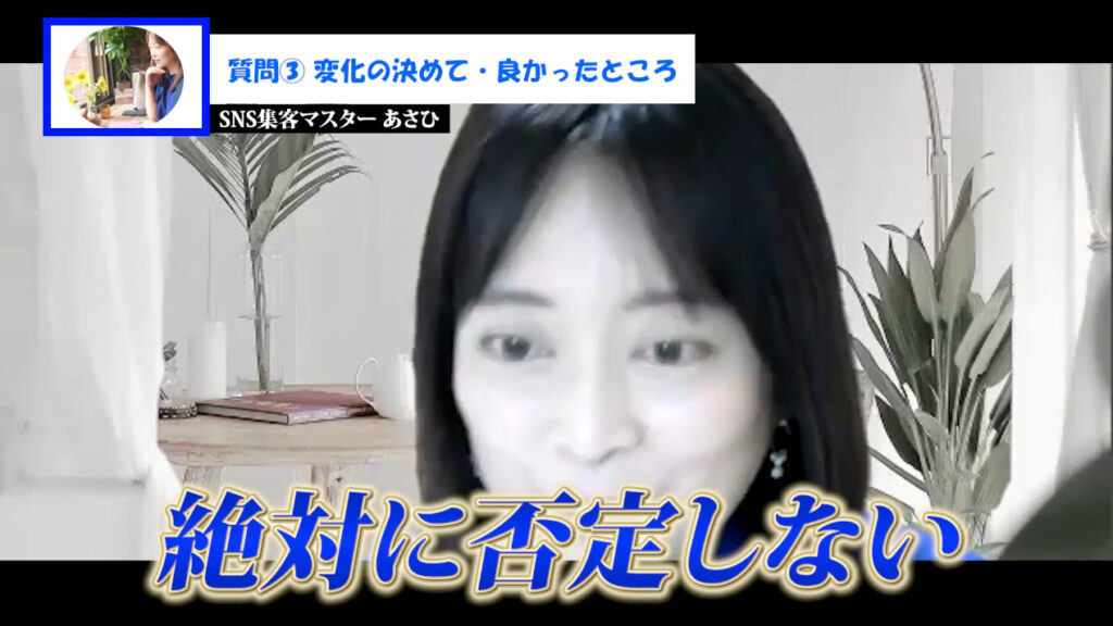 あさひ:コンサルを受けて変化したなかで、特に決め手となったこと、僕のコンサルのなかで「ここが良かった」と思った部分ってどこでしょうか?