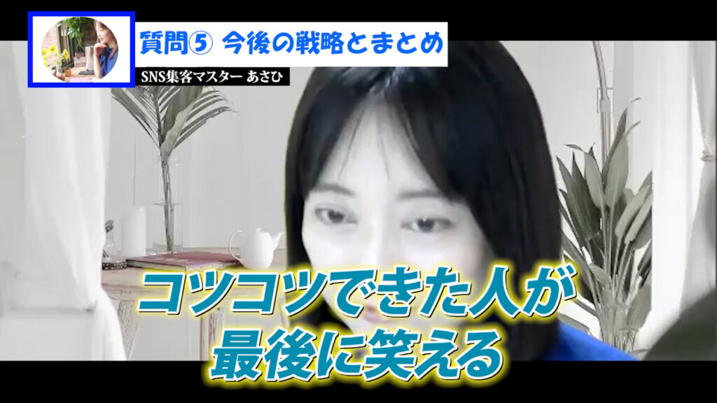 SNSや起業の世界では、技術やノウハウよりも「継続できるかどうか」が成功を左右します。ゆみさんは、あさひさんの「否定しない・寄り添う」姿勢に支えられ、モチベーションを保ちながら日々の発信に向き合うことができました。心の安心感がある環境こそが、挑戦を支える土台になることがわかります。