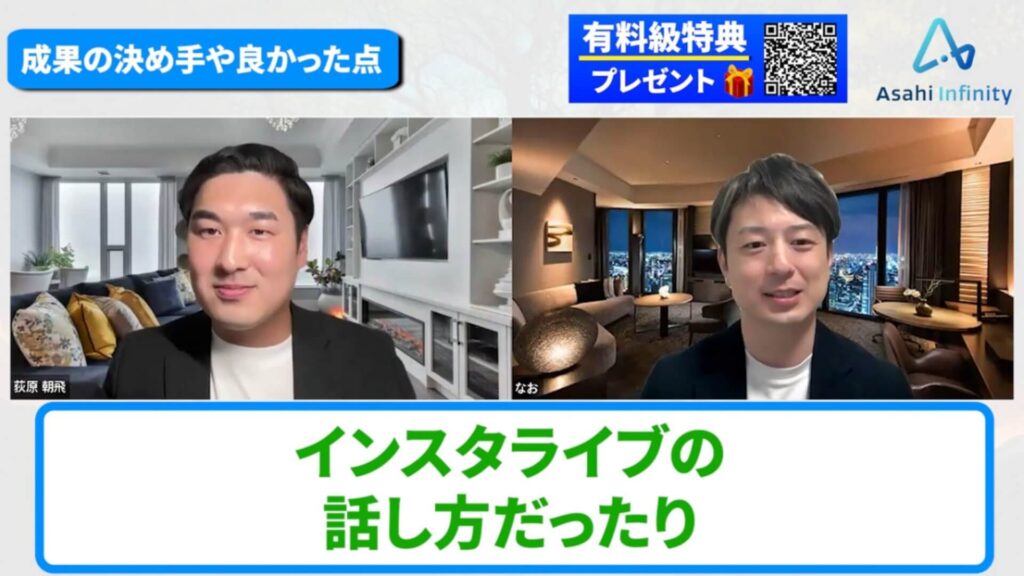 なお:まさにそれでした。僕も最初はうまく構成できず、ライブをしても反応がイマイチでした。しかし、あさひさんにライブの添削までしてもらい、どこを直すべきかが明確になりました。結果、視聴者の反応も売上も大きく変わりました。