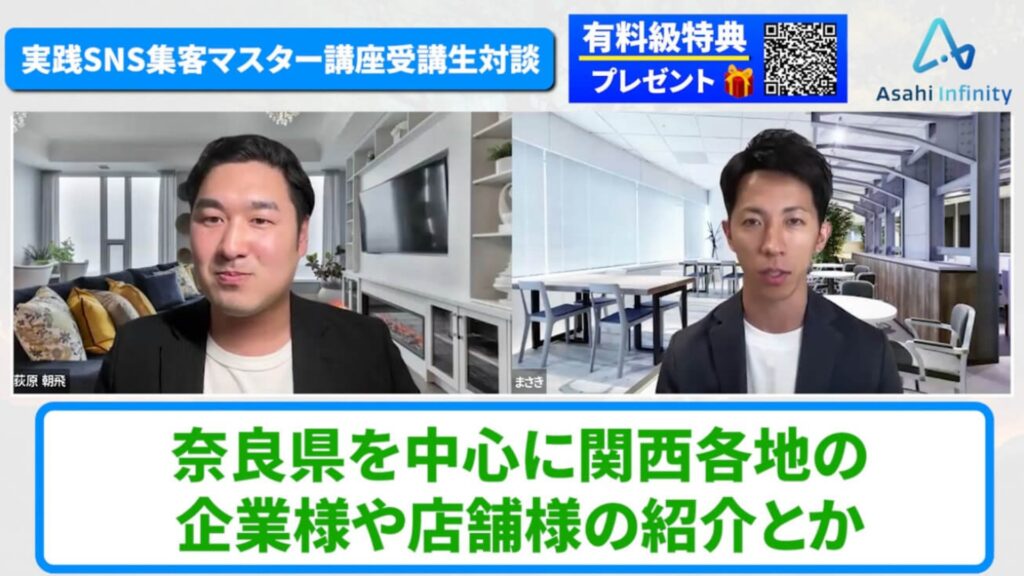 まさき:はい。Instagramであさひさんの発信を見つけて、すぐに「この人から学びたい」と感じました。熱量や人柄に惹かれて、迷わず講座に申し込みました。