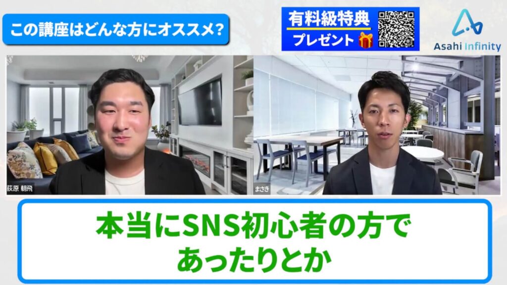 あさひ:ありがとうございます。僕自身も常に「自分が学び続けること」を意識していますし、それをすぐに皆さんに還元できるのが、この講座の価値だと思っています。