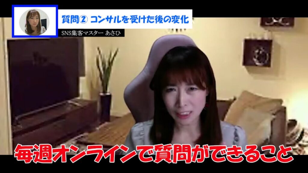 あさひ:サポート期間も無制限ですので、何かあってもすぐに対応できる環境が大事ですよね。グループコンサルだけだと「私はどうすればいいの?」と悩みやすいですし。