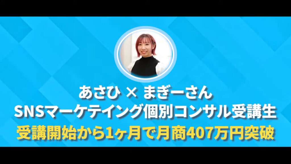 こんにちは、Webマーケティング講師のあさひです!今回はSNS集客と個別コンサルを通して、わずか1か月で累計436万円の売上を達成したまぎーさんにお話を伺いました。