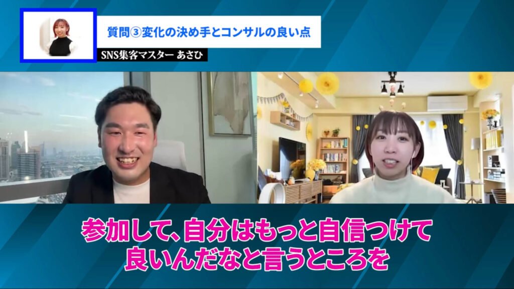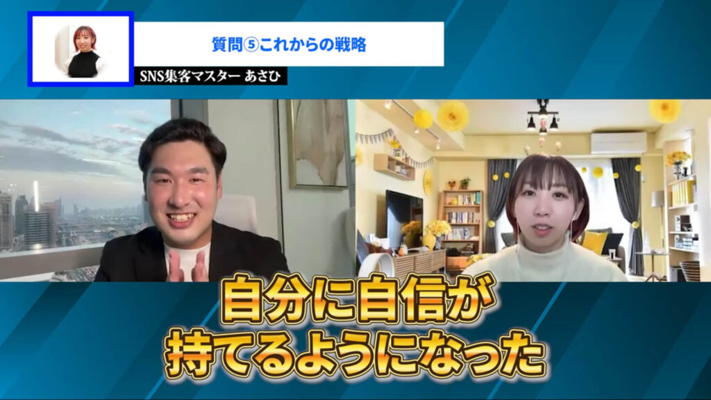 あさひ:まさに「自信が変われば行動が変わる」。そして行動が変われば、結果も大きく変わってくるんですよね。