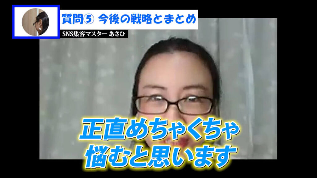 みえこ:運用代行の資格を持っていますが、子供が2人いるので、時間をつくるのが本当に難しかったです。だからこそ、集客の方法を学びたいと思って、あさひさんの講座に入りました。