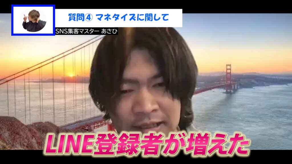 なおき:はい。YouTubeとInstagramライブ戦略を軸に進めました。あさひさんに相談させてもらって「プレゼント特典」の設計も取り入れたところ、いきなりLINEの登録者が増えました。