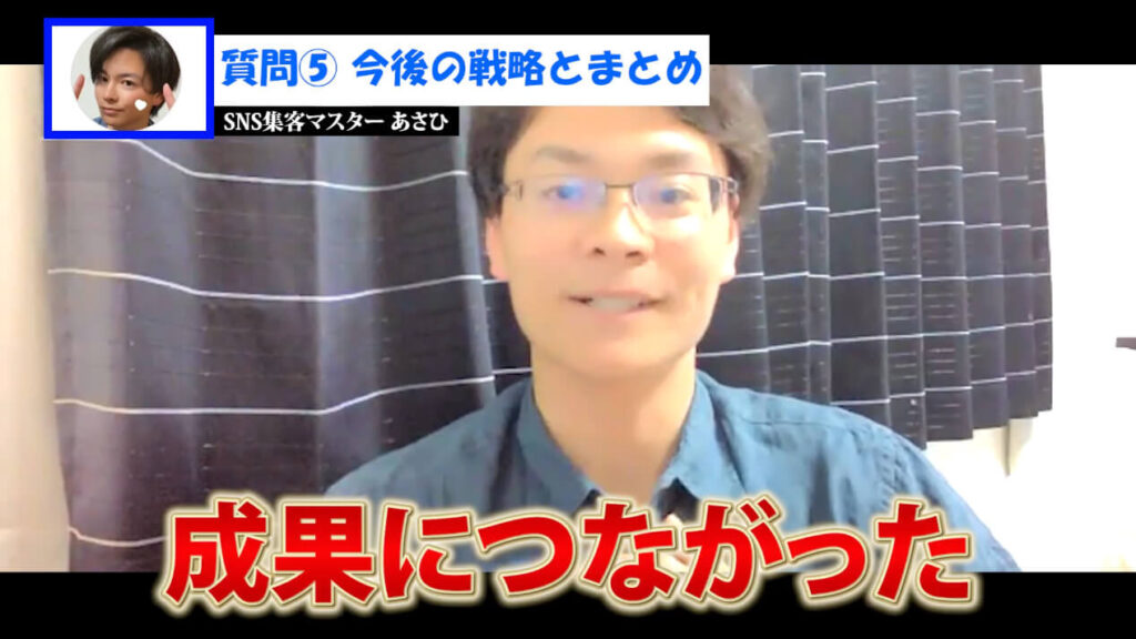 あさひ:完璧ですね。その3つ、実はSNSマーケティングでも鉄板でして、冒頭で興味を引いてそのまま最後まで見てもらう構成なんです。まーちゃんさんはこれを全部自分のなかで再現できたっていうのが本当にすばらしいです。
