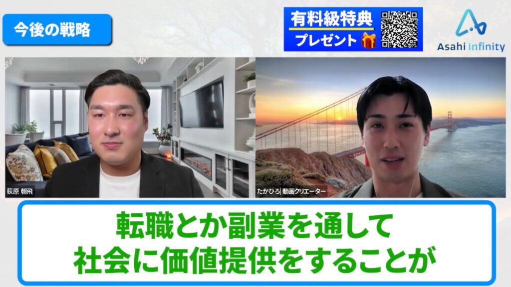 あさひ:それは素晴らしいですね。やっぱりスキルを磨いた先に「人を支える側に回る」というのは、より大きな価値を生み出せるし、社会的意義もありますよね。