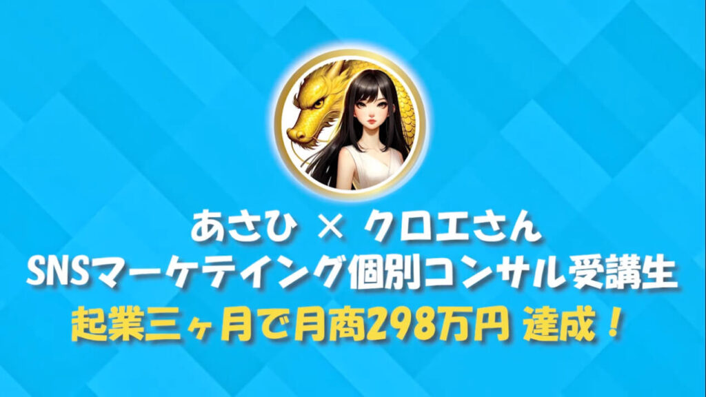 こんにちは、あさひです!今回ご紹介するのはスピリチュアル × SNSマーケティングを組み合わせ、起業からたった90日で298万円の売上を達成した“龍使い”ことクロエさんにお話を伺いました。
