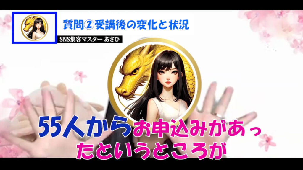 クロエ:あとは、あさひさんから添削を受けたストーリーズとLINE配信文で募集をかけたところ、36時間で55件のお問い合わせが来ました。