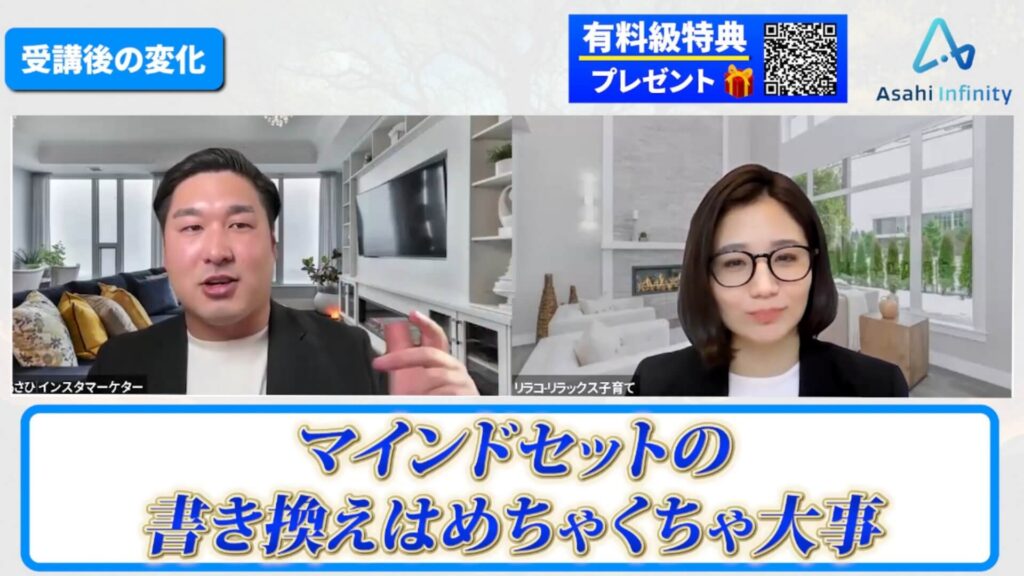 りらこ:はい、めちゃくちゃ変わりました。特にあさひさんの「潜在意識の授業」で「思い込みが8割だよ」って言われたのが、私のなかですごく大きかったです。最初に収益が8桁超えたとき、私ってまだ「え?本当に?」って思っていたんです。でも、あさひさんに報告したら、「おめでとうございます。通過点ですね」って(笑)。
