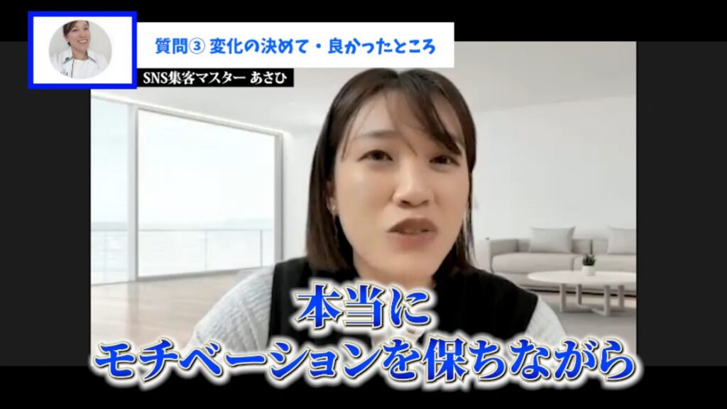あすか:はい。質問や相談に即レスいただき、迷わず次の行動に移せました。返信が早いことでモチベーションも維持できました。
