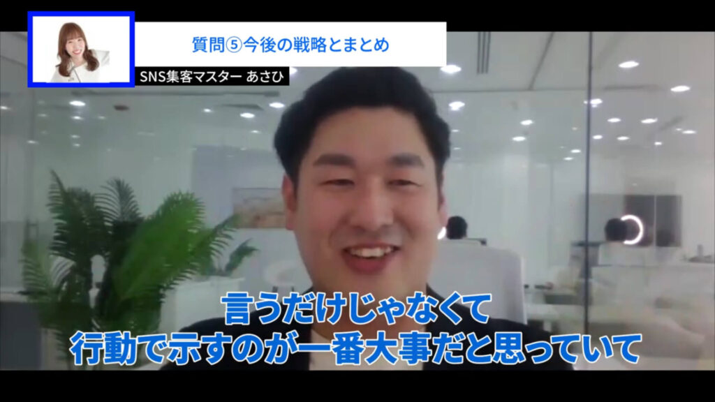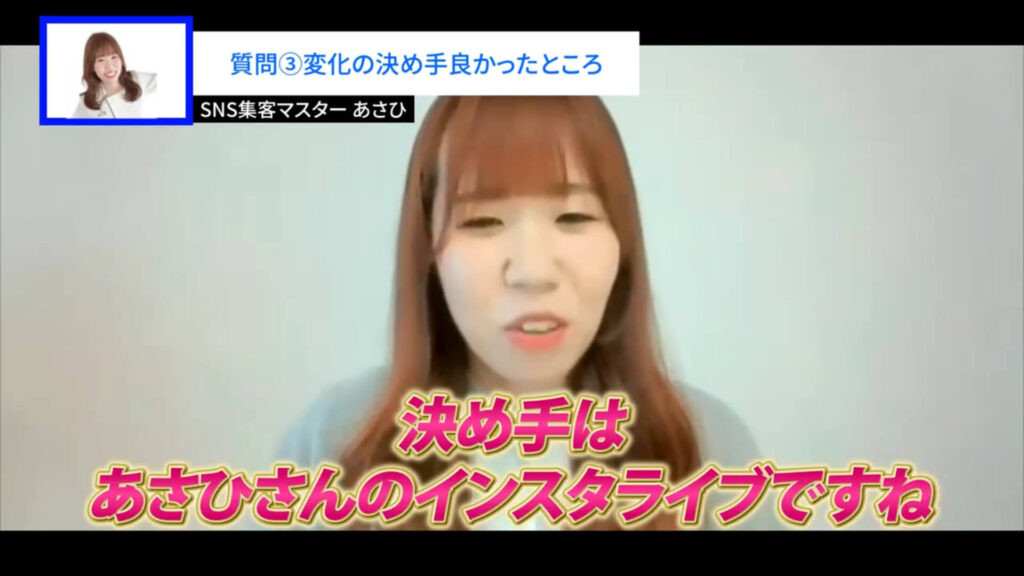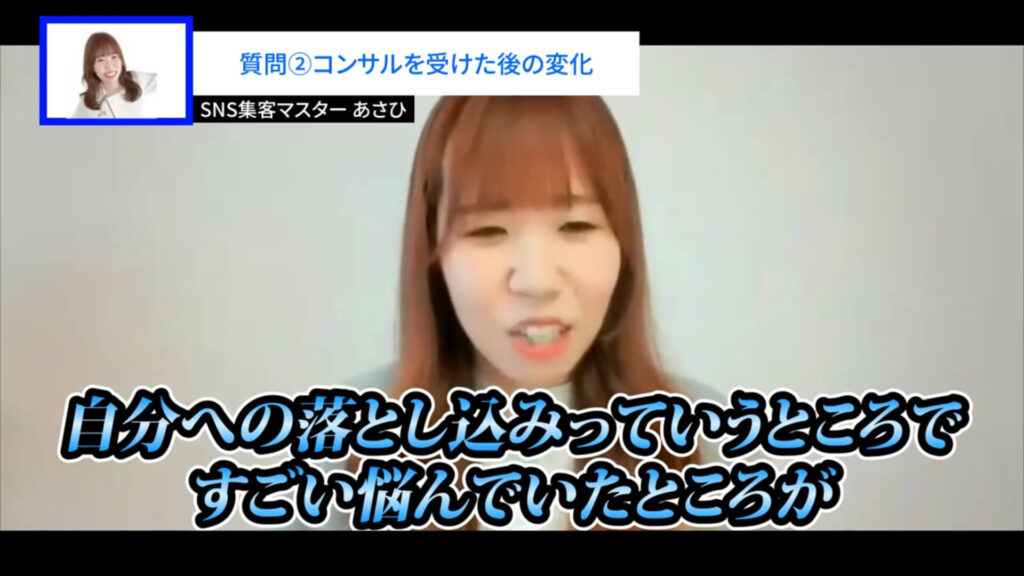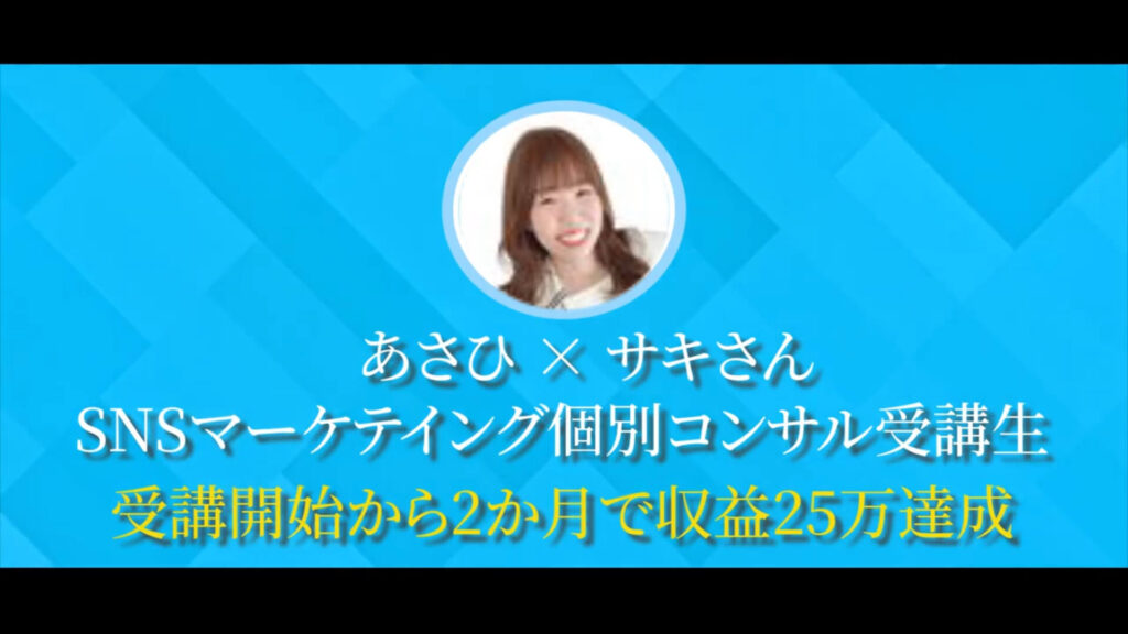 あさひ:本当に素晴らしいです。コンサルを受けてすぐに3件も個別相談が入ったんですよね。個別相談の段階で20万円〜50万円のサービスにつながることが多いので、すごく良い流れに乗られたと思います。