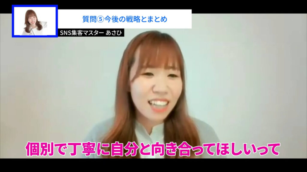 さき:そうなんです。そんなときにあさひさんのZoom相談で、直接悩みを聞いてもらって、具体的なアドバイスをいくつかいただいたんですね。