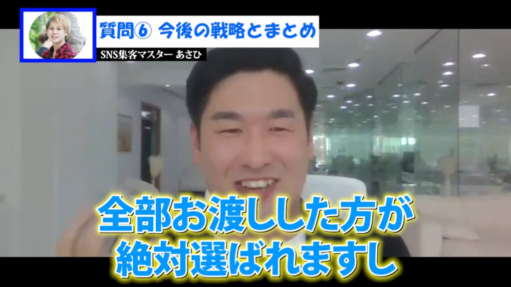 あさひ:まさに実績に裏付けられた内容ですね。特典のレベルもかなり高いので、学びたい方にとっては最高の教材だと思います。僕の方でも、まーしーさんの公式LINEは動画の概要欄に載せていますので、ぜひ気軽に登録してもらえたら嬉しいです。